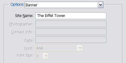 Next one is Banner. Here you can enter the Site Name which will be used as gallery title and will show up in the window frame and the page header. All other fields are greyed out.