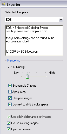 Once the Exporter window opens choose "EOS" as your Selected Template as shown in the image below.